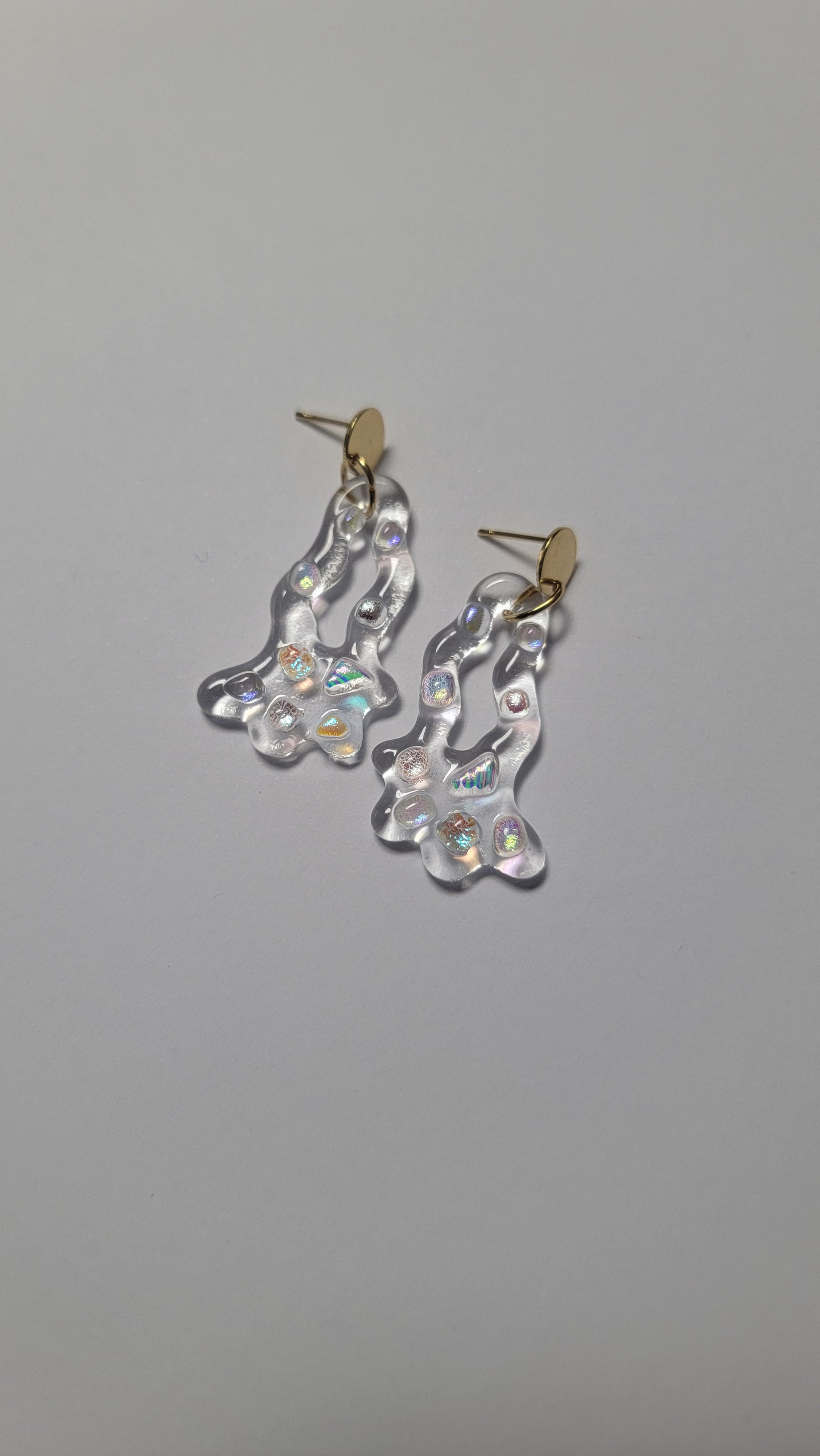 Encontrarás piezas en vidrio transparente y en Dusty Blue, un azul empolvado que captura la esencia del invierno. Aretes pensados para acompañarte en los días fríos, aportando luz, calma y elegancia.