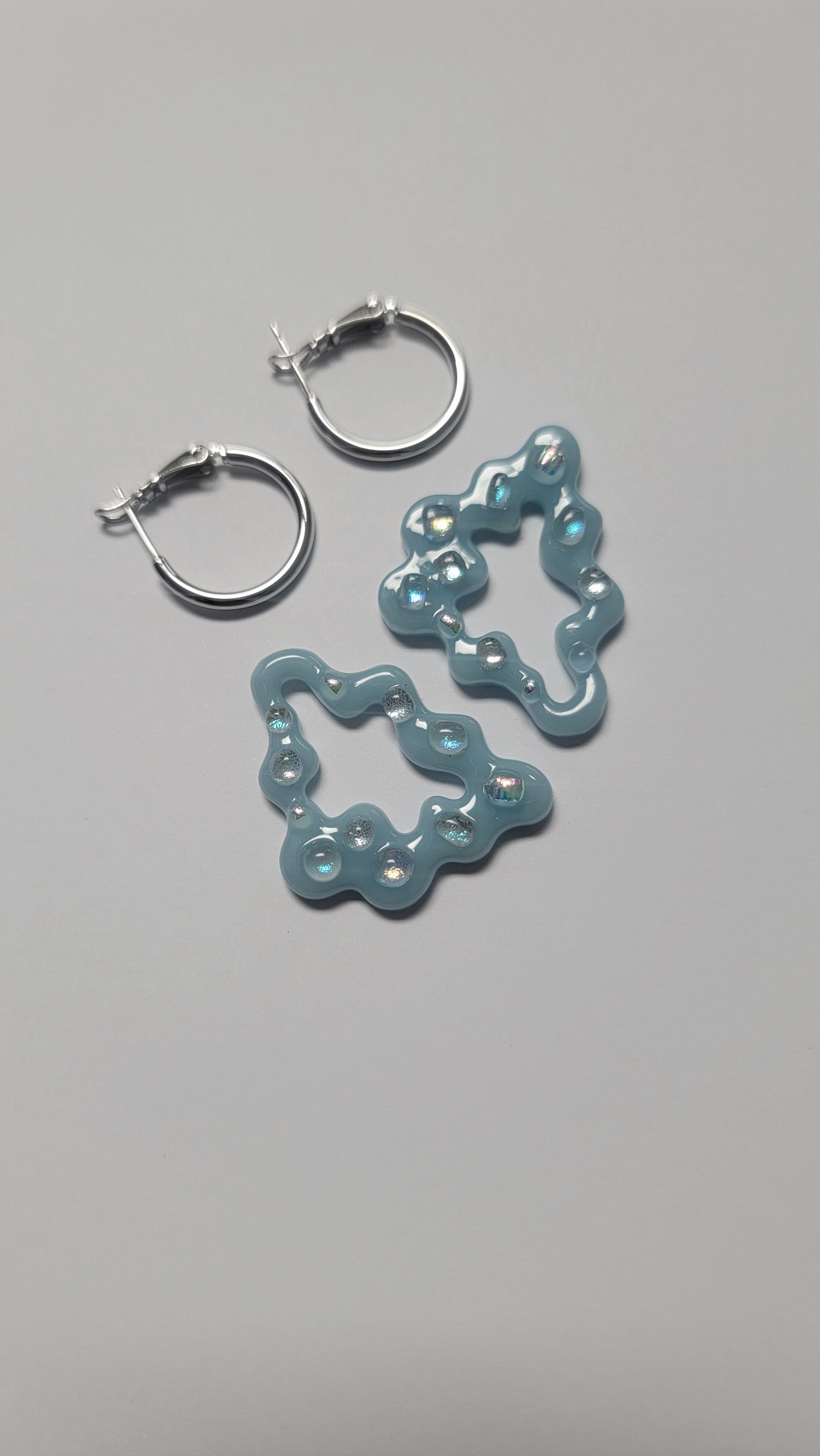 Encontrarás piezas en vidrio transparente y en Dusty Blue, un azul empolvado que captura la esencia del invierno. Aretes pensados para acompañarte en los días fríos, aportando luz, calma y elegancia.