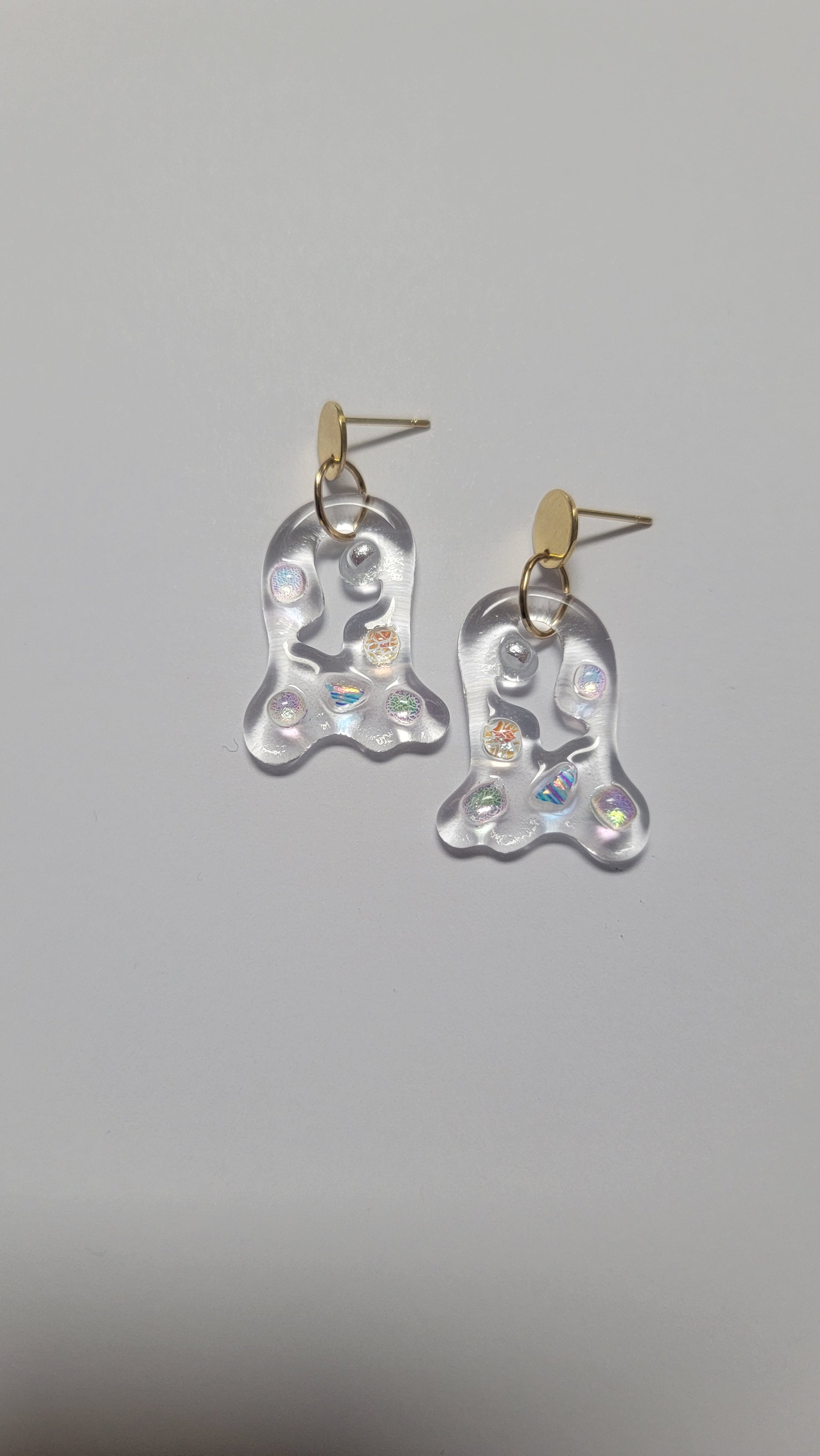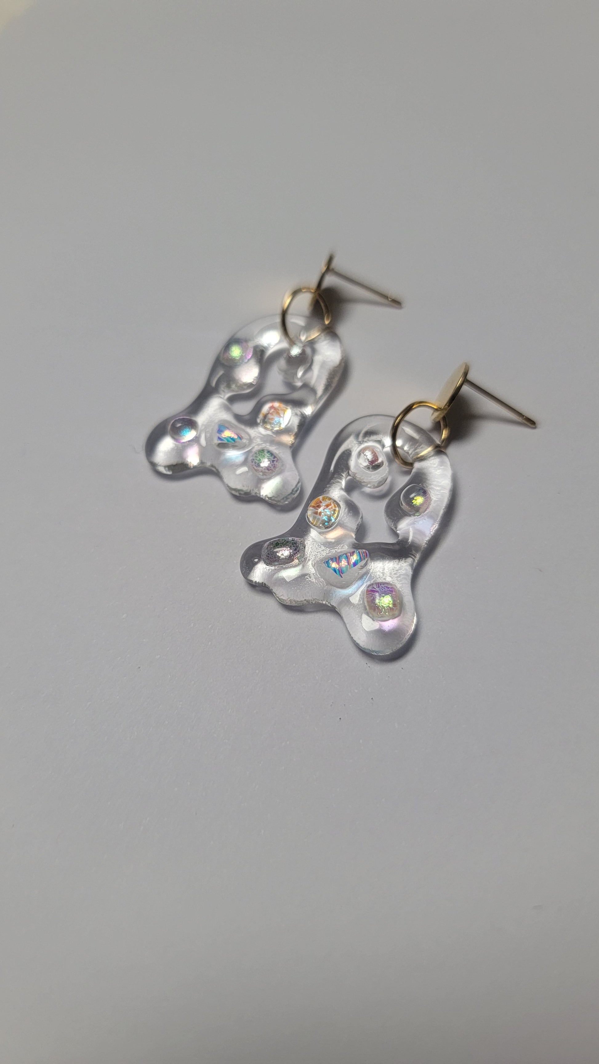 Encontrarás piezas en vidrio transparente y en Dusty Blue, un azul empolvado que captura la esencia del invierno. Aretes pensados para acompañarte en los días fríos, aportando luz, calma y elegancia.